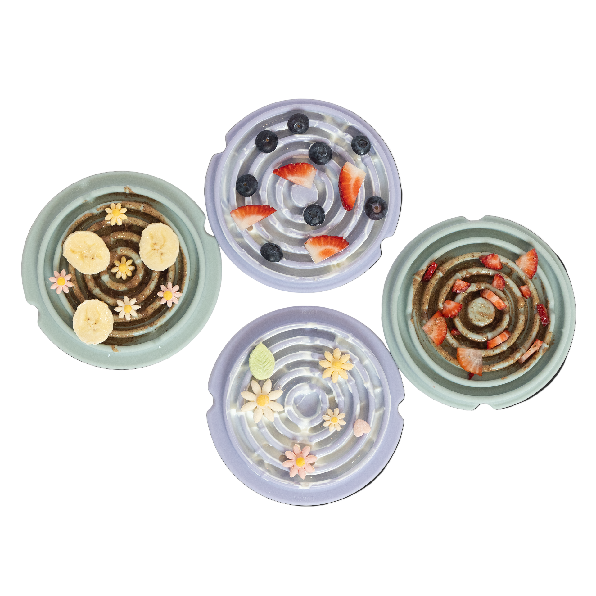 Use Twirl as a small slow feeder for wet meals, or as a lick mat for spreadable treats like peanut butter, yogurt, purees, etc. Twirl stimulates licking, which calms and soothes pets. One Twirl comes with two sides for easy preparation, cleaning, and portion control.