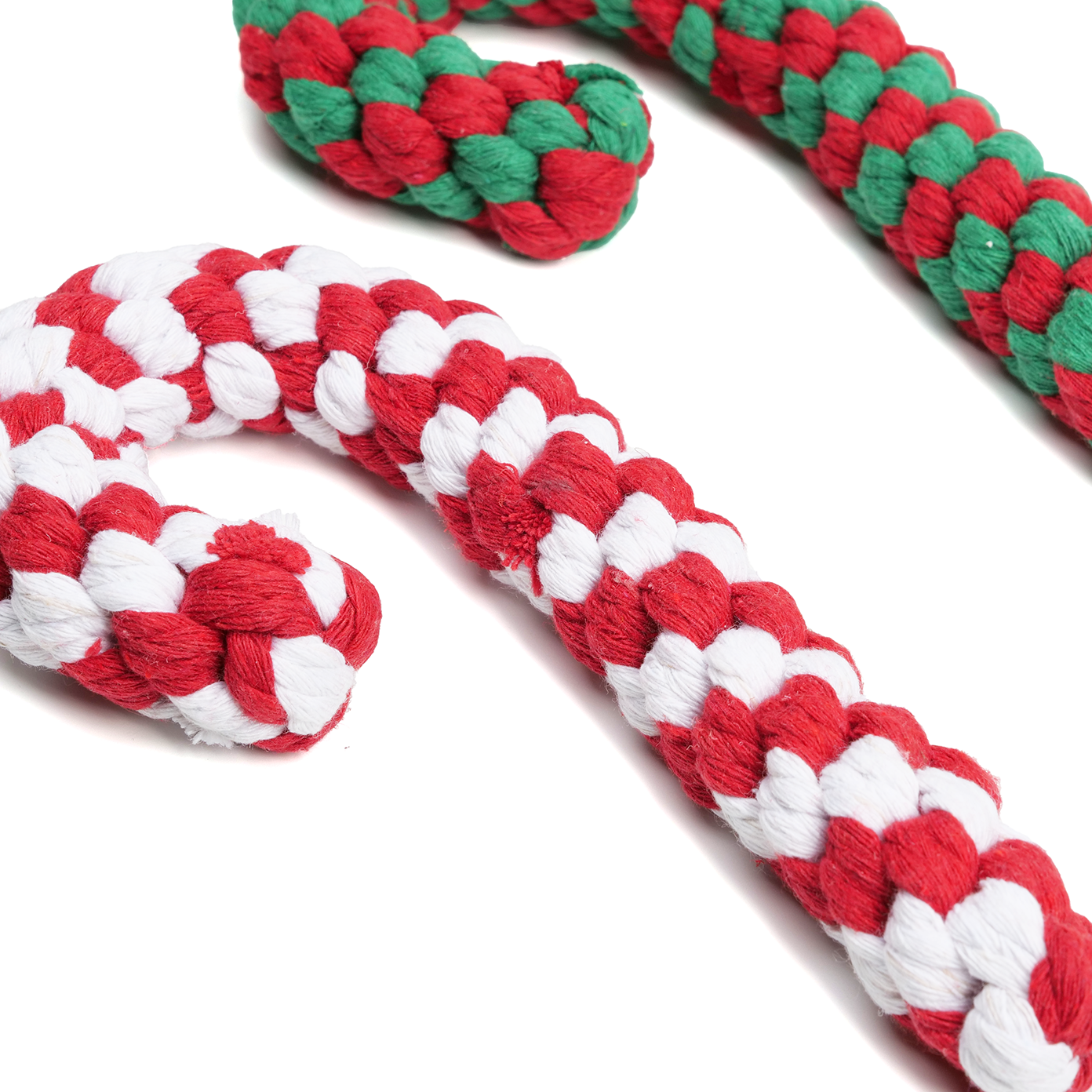 Get your pup into the holiday spirit with our festive candy cane rope toys! Made from sturdy, braided cotton, they are perfect for tugging, chewing and fetching fun. These cute candy cane also adding a splash of holiday cheer to your dog's toy collection. Perfect for gentle chewers, these festive ropes make a merry gift for your furry friend this Christmas!