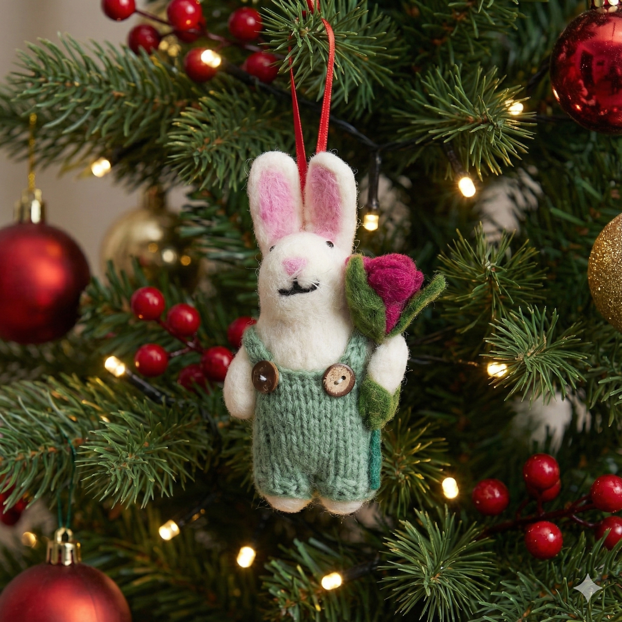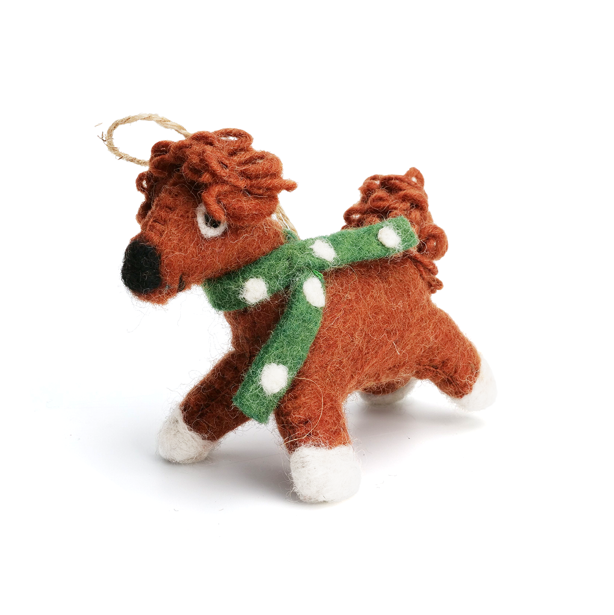 Made from 100% wool and handcrafted using traditional needle-felting techniques, each ornament is individually shaped and detailed by skilled artisans in Nepal. With its soft texture and charming handmade character, this piece makes a delightful addition to any Christmas tree or festive display.