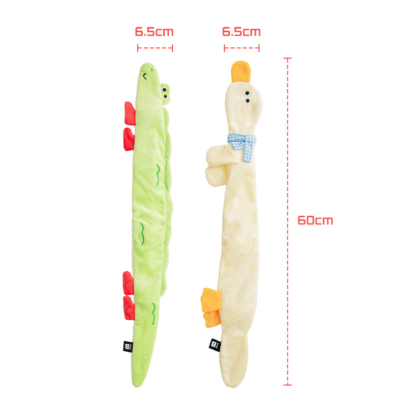 These adorable croc and duck friends are designed for pups who love to tug, shake, and carry their toys around.